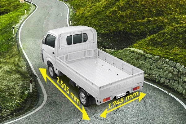 Mengenai dimensi. Bak New Carry Pick Up kini memiliki panjang 2.505 mm, lebar 1.745 mm dan tinggi 425 mm. Ruang angkut ini sanggup menampung muatan seberat 1 ton. Agar isi tetap aman selama perjalanan, pelanggan dapat memanfaatkan pengait yang ada di sekeliling bak untuk mengikatkan barang.  Ada 12 pengait tipe FD (Flat Deck) dan 22 pada tipe WD (Wide Deck).